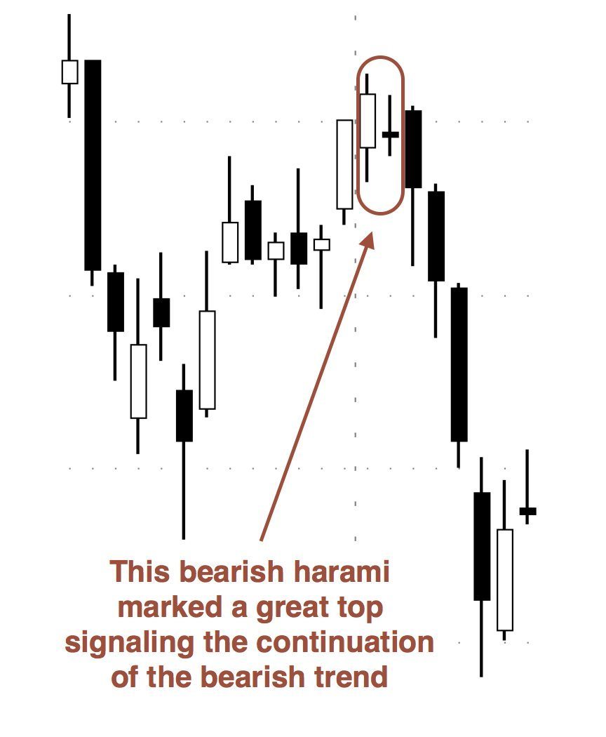 The Bearish Harami candlestick pattern is surprisingly popular despite its relatively poor history of playing out in a bearish manner. Usually when one appears, it is best to take note and adjust your stops.